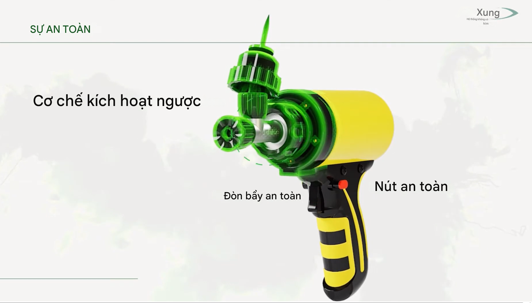 • Cơ chế hoạt động ổn định, áp lực tiêm đều, hạn chế tổn thương mô