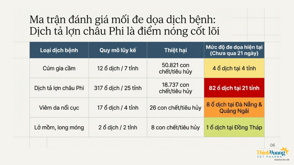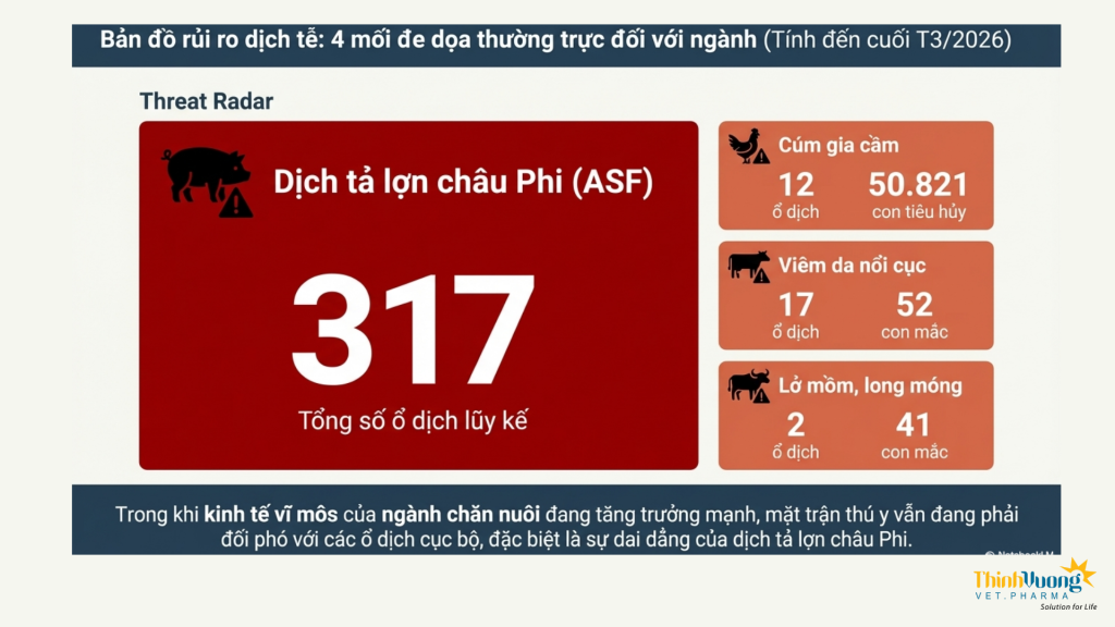 Bên cạnh yếu tố kinh tế, dịch bệnh vẫn là rủi ro tiềm ẩn cần được kiểm soát chặt chẽ. Mặc dù các ổ dịch lớn đã được khống chế, nhưng một số bệnh nguy hiểm như dịch tả lợn châu Phi, cúm gia cầm hay viêm da nổi cục vẫn xuất hiện rải rác tại nhiều địa phương. Thực tế cho thấy phần lớn các ổ dịch phát sinh tại những khu vực chưa tuân thủ nghiêm ngặt các biện pháp an toàn sinh học và tiêm phòng, kiểm soát tốt quy trình an toàn sinh học nhấn mạnh vai trò then chốt của công tác phòng bệnh chủ động trong chăn nuôi hiện đại.