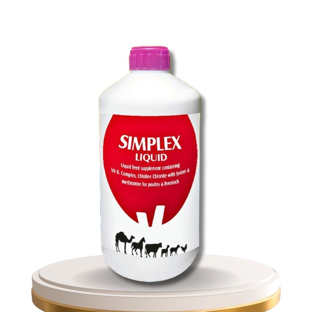 SIMPLEX LIQUID là sản phẩm bổ sung vitamin nhóm B và acid amin thiết yếu, giúp cải thiện tăng trưởng, nâng cao sức khỏe da – lông – móng và hỗ trợ sinh sản cho vật nuôi. Sản phẩm thích hợp sử dụng trong giai đoạn tăng trưởng nhanh, stress, thay đổi thời tiết hoặc sau tiêm phòng.